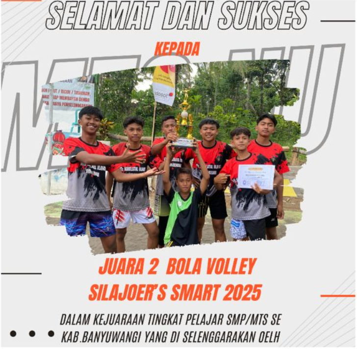 Siswa MTs. Nahdlatul Ulama meraih juara 2 dalam lomba bola voli se kabupaten banyuwangi pada tahun 2025 yang bertempat di SMANU Gombengsari